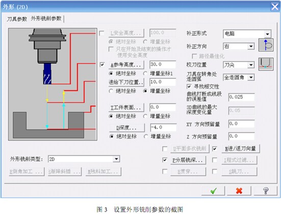 圖 3 是設置外形銑削參數的截圖.