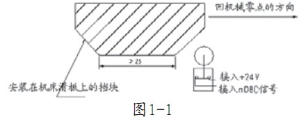 b. 當減速開關釋放后,減速信號觸點重新閉合,CNC開始檢測編碼器的一轉信號,如該信號電平跳變,則運動停止,同時操作面板上相應軸的回零結束指示燈亮,機械回零操作結束。