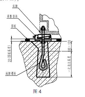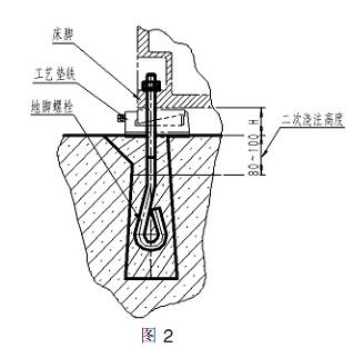 基礎(chǔ)二次灌漿料澆注分兩次進(jìn)行 以控制漿的穩(wěn)定性 首先 將攪拌好的二次灌漿料澆注在二次灌漿坑內(nèi) 上部預(yù)留100-240mm空間圖 用振動(dòng)棒夯實(shí) 固化24小時(shí) 然后 將混合好的二次灌漿料灌入二次灌漿坑上部預(yù)留100-240mm空間內(nèi) 要求二次灌漿料的上液面必須高出基礎(chǔ)墊鐵下表面20-30mm封料高度 的高度 保證灌漿料自流充實(shí)墊鐵的安裝面 其中20-30mm的封料高度高度 可以制作圍板來(lái)實(shí)現(xiàn) 但圍板四周必須用水泥或玻璃膠密封好 防止水分灌漿料在養(yǎng)生過(guò)程水分流失 封料高度 也可在地基上直