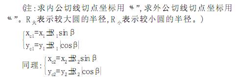 基點是指各幾何元素間的聯結點。而直線與圓弧是構成零件輪廓的最基本的幾何元素。與直線或圓相關的基點計算,包括直線與直線相交、 直線與圓相交或相切、 圓與圓相交或相切, 以上基點計算通常均需采用聯立方程求解的方法完成, 而作為二次曲線的圓方程, 聯立求解則過程甚繁。改進的方法是, 若能利用幾何元素間的三角函數關系, 則可避免求解聯立方程。為了確定幾何元素間的三角關系, 學生必須先正確作圖, 處理過程很繁。這樣就產生了以下要說明的簡便計算方法, 學生用計算器即可迅速完成計算。類型分別介紹如下:類型1.直線與圓相切求切點坐標