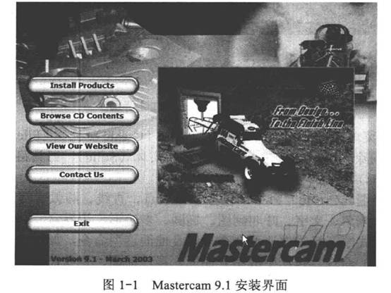 雙擊光盤Mastercam 9.1目錄下Setup.exe文件,啟動安裝界面,如圖1-1所示。