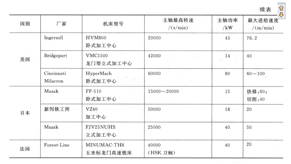 滾珠絲杠的疾速進(jìn)結(jié)速度可達(dá)40一60m/mtH,直線電機(jī)的疾速進(jìn)給速度高達(dá)90一120m/min。此外,高速機(jī)床的主抽和作業(yè)臺(tái)還要具有杰出的加速度功能,主軸從啟動(dòng)到最高轉(zhuǎn)速的時(shí)刻只用1—2s,作業(yè)臺(tái)的加速度到達(dá)lf一105。表8—1列出了這些年國(guó)際上幾種高速機(jī)床的首要產(chǎn)品和標(biāo)準(zhǔn)。
