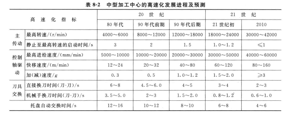 開(kāi)展進(jìn)程,顯現(xiàn)了CNC機(jī)床向高速化開(kāi)展的趨勢(shì)。