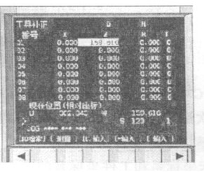 ( 1) 將 02 號外切槽刀沿- Z 靠近工件右端面, 此時由于01號刀已經定位 Z軸工件坐標系,所以 02 號刀不能再次切削右端面,應采用/ 碰刀法0。用手輪方式將 02 號刀具沿- Z 方向靠近右端面,當刀具離工件非常近時將手輪的進給倍率調至最小。當在進給過程中看到有切屑飛出時, 停止- Z 方向的進給,沿+ X 軸將刀退出,此時 Z 軸不能移動, 點擊MDI 鍵盤上的offset setting鍵, 進入刀具補償界面,按 CRT 顯示器軟鍵所對應的形狀, 在 02 號刀 Z軸中輸入 Z0, 點擊控制面板上的刀具測量0 ,再點擊軟鍵對應的/ 測量0 , 02號刀具 Z 軸對刀完成,此時 Z 軸可隨意移動。