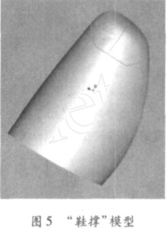 下面 ,圖 5所示的“ 鞋撐 ” 模型 ,是用實體造型方法繪制的工件三維圖形,在數(shù)控銑床上加工出該工件曲面時加工中刀具軌跡生成時的進退刀方法的確定 ,關系到許多重要參數(shù)的選取 ,也關系到銑刀運動軌跡的自動生成即數(shù)控程序的自動生成