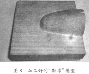 在實驗室條件下 ,采用華中 ZJK7532A數(shù)控銑床 , R3的球頭銑刀及工程塑料進行加工 ,完成了“ 鞋撐 ” 模型加工 ,曲面輪廓完整 ,說明建模和進、退刀方法是正確的。加工好的零件如圖 8所示。