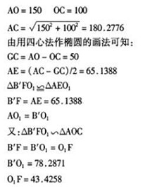 5)分別以 O1、 O2、 O3、 O4為圓心, 以 O1A、 O2B、 O3 C、 O4D為半徑作圓, 分別相切于 Bˊ、 Aˊ、 Dˊ、Cˊ, 即得一近似橢圓。